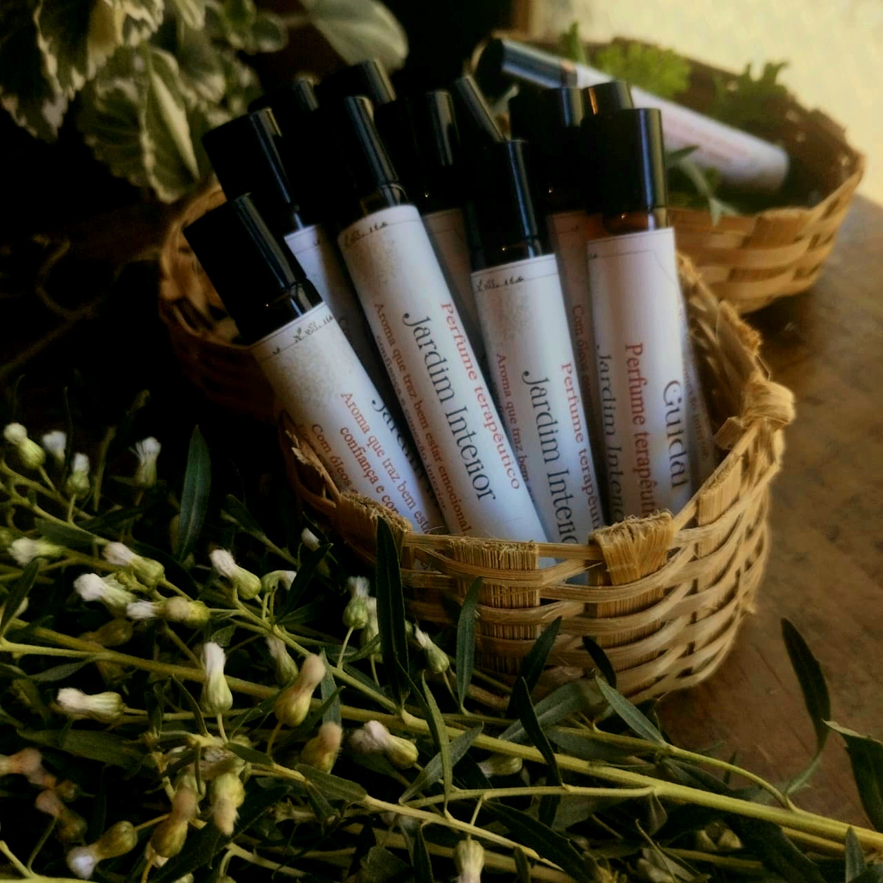 Com óleos essenciais de Gerânio, Erva Cidreira e Alecrim do Campo de cutivo agroecológico e destilação própria.